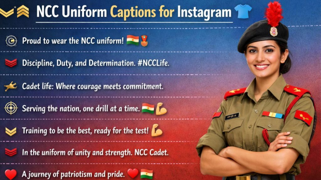 Ever taken a strong photo in your NCC uniform but struggled to find the right words for it? It happens more than you think. A powerful image needs a caption that matches its energy. Your bio or caption should reflect your discipline, your mindset, and your pride as a cadet. It should feel real. Not copied. Not forced. Just simple words that show who you are and what NCC means to you.
