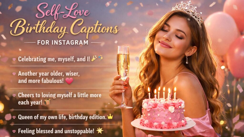 In this collection, you will find the best self birthday captions for Instagram. These captions are easy to read and full of positive vibes. From cute and funny to confident and bold, there is something for everyone. You can pick a caption that matches your mood and personality. Celebrate yourself, your growth, and your happiness. Make your birthday post stand out and shine with the perfect caption.