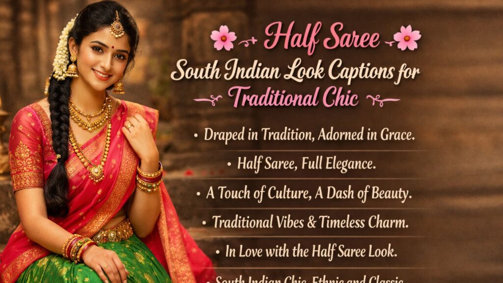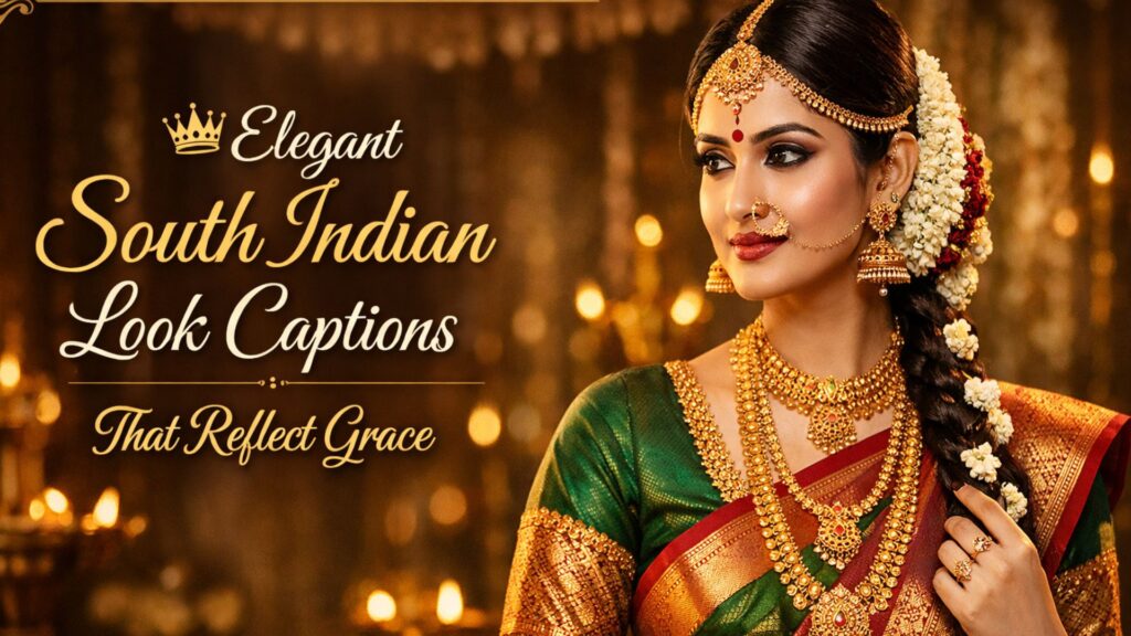 South Indian looks are known for their elegance, tradition, and natural beauty. From silk sarees to jasmine flowers and temple jewellery, every detail creates a graceful and cultural vibe. These looks are not just outfits, they represent heritage and confidence. When shared on Instagram, the right caption makes the picture even more powerful and expressive. A simple line can highlight beauty, culture, and personality in a natural way. That is why South Indian look captions are so popular among girls who love ethnic fashion and timeless style.