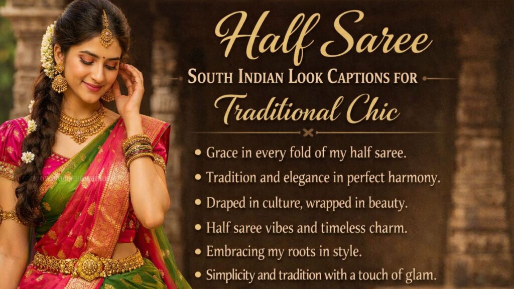 Youthful, elegant, and culturally rich captions for half saree and festive traditional looks.