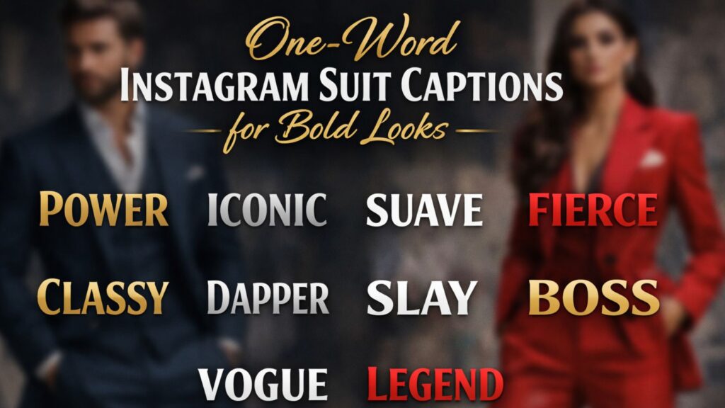 One word can say everything when your outfit is powerful. These bold Suit Captions for Instagram are perfect for strong personality-driven posts.