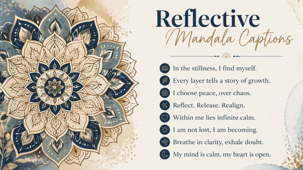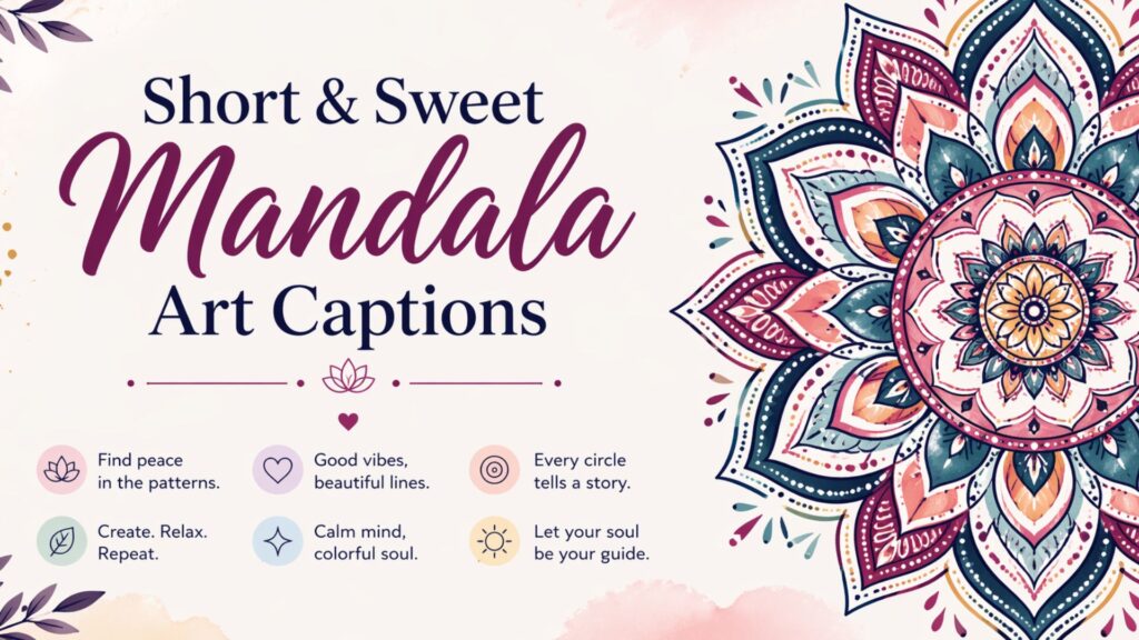 Mandala art is more than design—it’s patience, emotion, and silent storytelling shaped into symmetry. Every caption adds voice to that silence, turning simple patterns into meaningful expressions that connect deeply with viewers and inspire calm creativity.