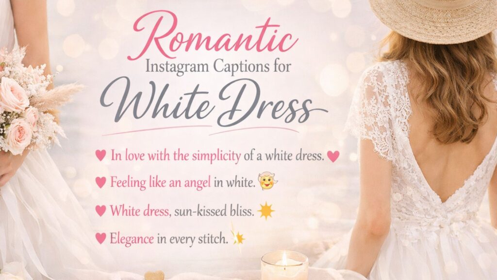 White dress photos often carry emotion, mood, and personality in a very subtle way. That is why captions matter so much. They help you express confidence, softness, or even fun energy in a few short lines. Whether it is a casual day out, a beach moment, or a special occasion, the right caption completes your look and makes your post stand out naturally on Instagram.