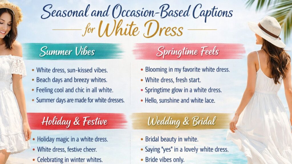 Seasonal and Occasion-Based Captions for White Dress